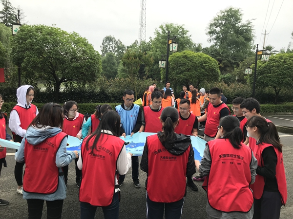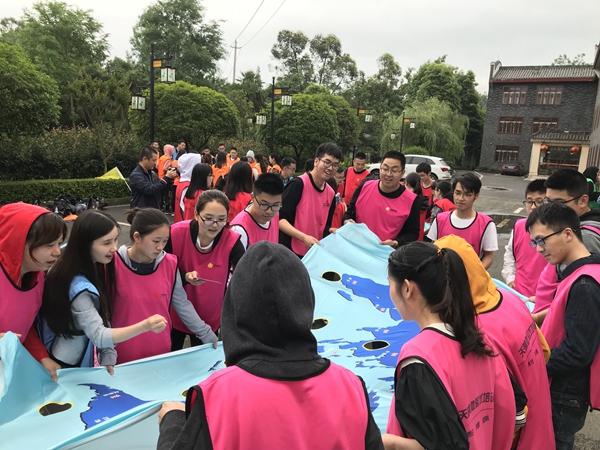 為密切院團員、青年的溝通交流,加強團隊協(xié)作和配合,院團委還組織團員青年開展素質(zhì)拓展活動,整場活動輕松活潑、氣氛熱烈、笑聲不斷。青年們分為4組進行比賽,制定了各自的隊名、口號和隊歌,在“世界球”游戲環(huán)節(jié)中,隊伍中每個成員都小心謹慎、全力配合,順利完成了任務;在“共普篇章--納斯卡巨畫”游戲環(huán)節(jié),四支隊伍通力合作,以五四為主題,各展所長,寫字、畫畫、配色、調(diào)色等環(huán)節(jié)都配合默契,共同繪制了我們的五四宣言和青春風采。通過活動,大力弘揚了五四精神,有效培養(yǎng)了良好的團隊協(xié)作能力,充分展現(xiàn)了青年們積極向上的青春風貌。