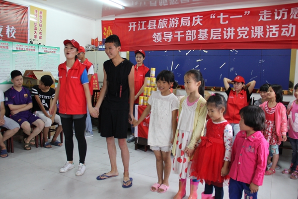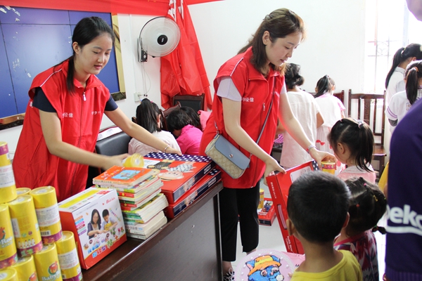 另外一組由團(tuán)委青年志愿者組成,在村委辦開展青春扶貧活動(dòng),為村上30余名留守兒童上了一堂別開生面的興趣活動(dòng)課。志愿者們各展才藝,教孩子們跳拉丁舞、做手工彩繪,培養(yǎng)孩子們的興趣愛好,在與孩子們的溝通和互動(dòng)中,建立了深厚的情誼。活動(dòng)結(jié)束后,志愿者們將提前購(gòu)買、籌集的愛心物資分發(fā)給了孩子們,其中包含文具套裝30套(含文具盒、圓規(guī)、尺子、鉛筆、橡皮等)、水彩畫筆30套、捐贈(zèng)書籍80余冊(cè)(含少兒讀物、教育科普、少兒雜志等)。