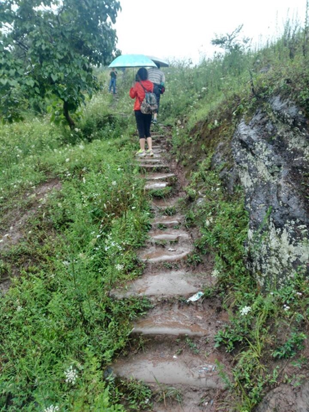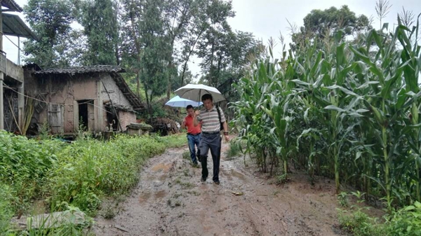 7月14日上午,慰問服務(wù)隊(duì)分成兩個(gè)小組開展扶貧工作,一組由朱書記帶隊(duì),與施工單位負(fù)責(zé)人一道,冒著大雨,實(shí)地踏勘小石埡口便民路。此路起于沙壩場(chǎng)鄉(xiāng)平橋,終于石埡口村2社李家凹田,長(zhǎng)度1.2公里,是學(xué)生上學(xué)、村民趕集的唯一步行通道,目前該路為泥石路面,寬度不足1米,路面崎嶇,步行艱難,一遇下雨,更是泥濘不堪,通行艱難。該便民路已被開江縣金準(zhǔn)扶貧聯(lián)絡(luò)辦公室確定為沙壩場(chǎng)鄉(xiāng)石埡口村2017年精準(zhǔn)扶貧項(xiàng)目,也是沙壩場(chǎng)鄉(xiāng)“一事一議”特批項(xiàng)目。為加快經(jīng)濟(jì)發(fā)展,促進(jìn)農(nóng)民增收,方便群眾生產(chǎn)生活,順利完成脫貧攻堅(jiān)任務(wù),院黨委已同意給予資金資助15萬元。為保障扶貧資金使用到位,扶貧項(xiàng)目質(zhì)量過關(guān),朱書記一行與施工方在實(shí)地踏勘后細(xì)化、完善了便民路施工方案,并商議施工方案和預(yù)算需經(jīng)院、鄉(xiāng)村、和施工方三方同意后實(shí)施。