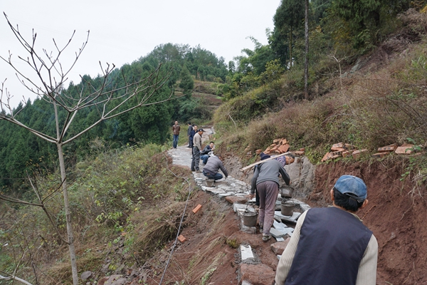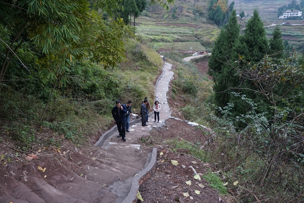 朱書記一行首先視察了由我院援建的“沙石路”。此路是連接沙壩場鄉(xiāng)和石埡口村的一條山間小道,雜草叢生,路面崎嶇濕滑,老百姓出行非常不方便。修繕這條路是老百姓和村支兩委多年的心愿,但施工難度大,資金短缺,一直未能實現(xiàn)。我院對接幫扶石埡口村以來,為老百姓辦實事辦好事,把修建“沙石路”作為2017年扶貧重點工作。